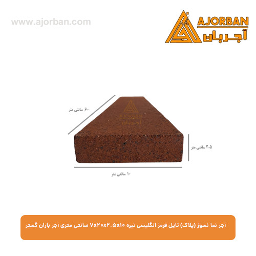 آجر نما نسوز (پلاک) تایل قرمز انگلیسی تیره 7x20x2.5x10 سانتی متری آجر باران گستر